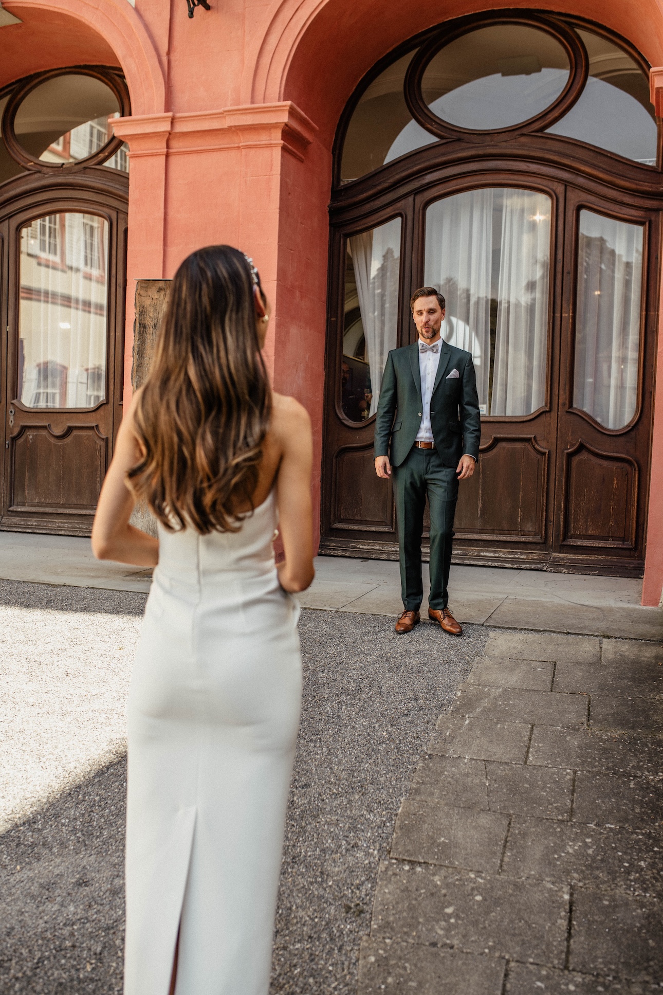 Also hier kommt erstmal die ganz offizielle Erklärung: Der First Look ist ein besonderer Moment vor der Trauung, bei dem sich Braut und Bräutigam das erste Mal in Hochzeitskleidung sehen – meist in privatem Rahmen, fernab der Gäste. Dieser Trend stammt aus den USA und wird zunehmend auch in Europa beliebter.