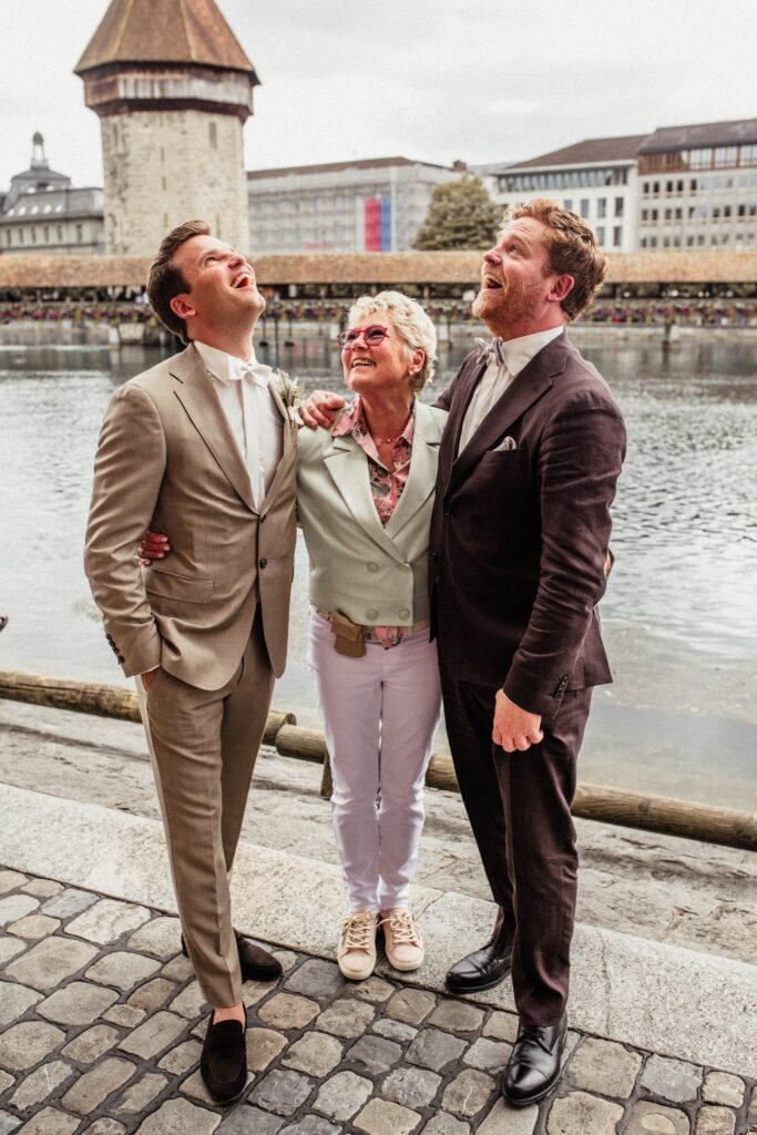 Ich zähle zu Gruppenfoto das eine grosse Gruppenbild, wo die ganze Hochzeitsgesellschaft zu sehen ist. Alle Gäste. Dieses Bild ist aus meiner Sicht – unnötig – wird Jahre später kaum mehr angeschaut. Das Gruppenfoto findet im Fotobuch auf einer Seite ein Platz. Und das wars. Das ist meine persönliche Meinung zu dem Thema Gruppenfoto. Mit dem Beitrag will ich einfach verschiedene Sichtweisen öffnen.