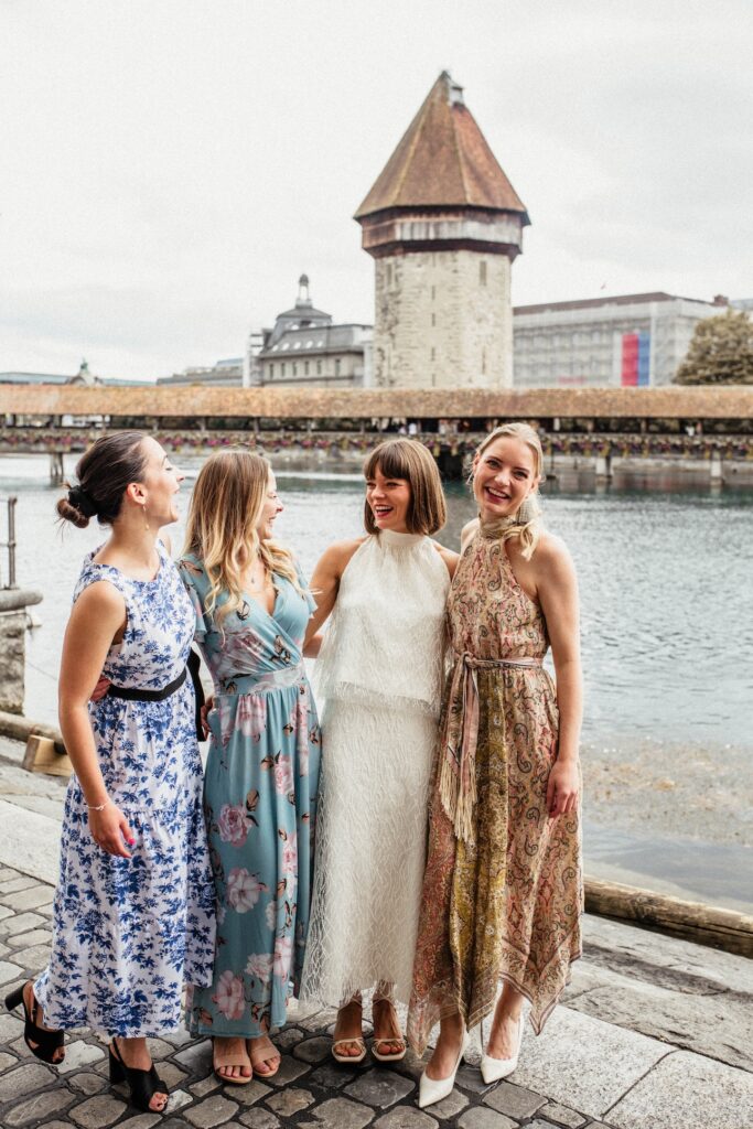 Konstellationsfotos hingegen sind Fotos bei denen wirklich nur ganz kleine Gruppen, wenn überhaupt, zusammen aufs Foto kommen. Alleine die Grösse der “Gruppe” hat schon so viele Vorteile weil man sehr viel spontaner auf die Location und Situation reagieren kann und oftmals viel dynamischere Bilder entstehen können, wie wenn man extra für ein grosses Gruppenfoto ja deutlich mehr Platz braucht und die ganze Gesellschaft erstmal an einen geeigneten Spot laufen muss den der Hochzeitsfotograf in der Regel bewusst aussucht und auch vorgibt.
